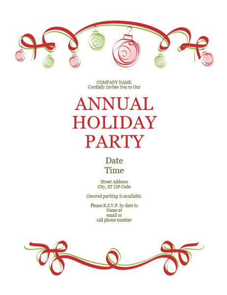 holiday party invitation with ornaments and red ribbon from Office Holiday Party Invitation Template