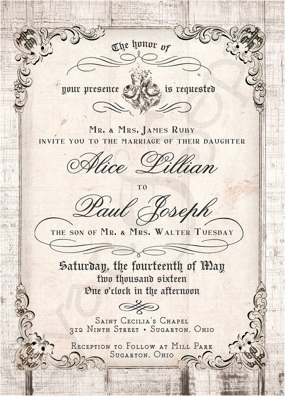 wedding invitations printable vintage old fashioned from Old Fashioned Wedding Invitation Template
