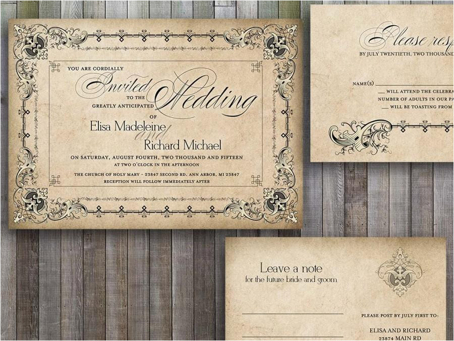 vintage wedding invitation rsvp card old by from Old Fashioned Wedding Invitation Template