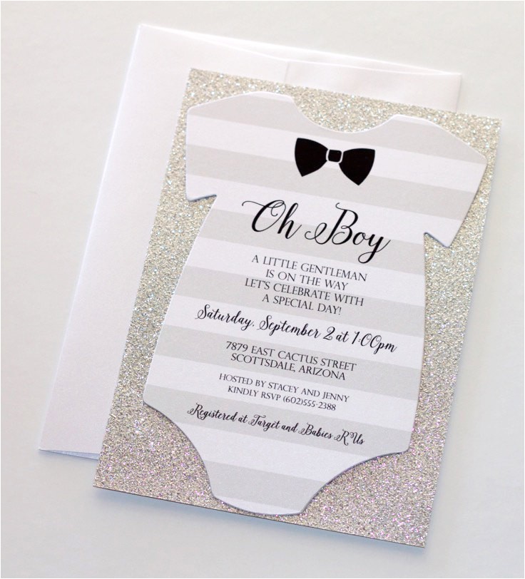 Baby Shower esie Invitation Glitter Shower Invitation from onesie baby shower invitations for baby boy