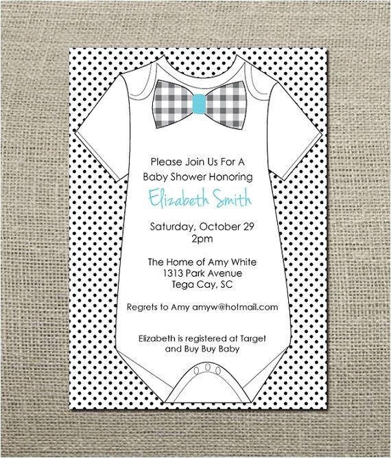 20 Baby Boy with Striped Bow Tie esie Baby Shower from onesie baby shower invitations for baby boy