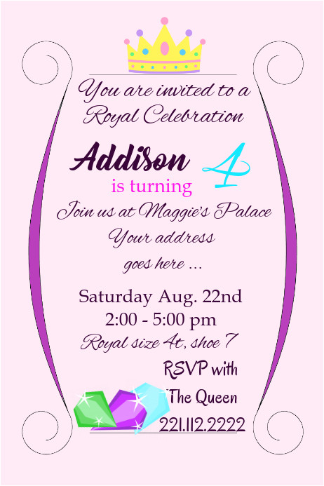 royal birthday girl party invite template postermywall from Online Birthday Invitation Template Girl