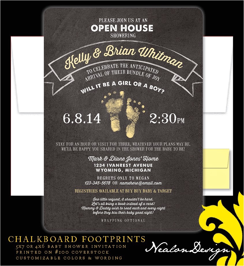 Nealon Design CHALKBOARD FOOTPRINTS Baby Shower from open house baby shower invitation wording