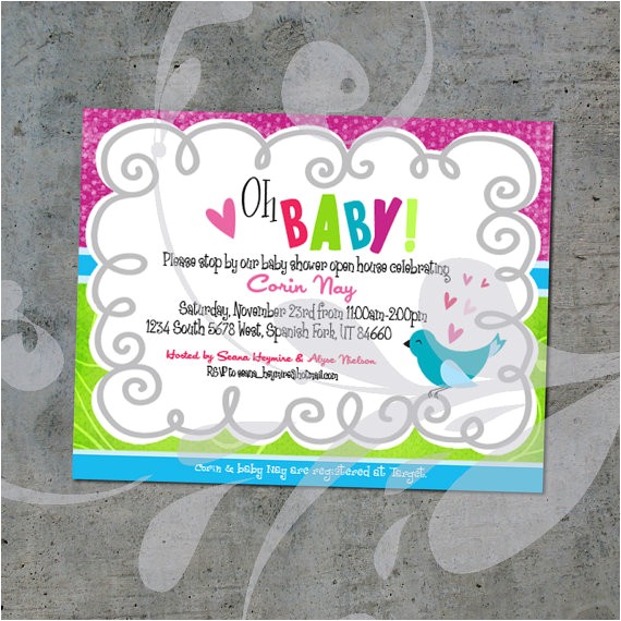 Oh Baby Baby Shower Open House Invitation Custom from open house baby shower invitation wording