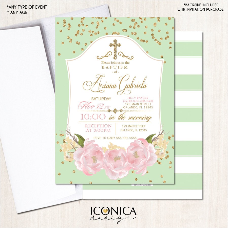 Baptism Invitation Floral Gold & Mint Green Gold Glitter from order baptism invitations online canada