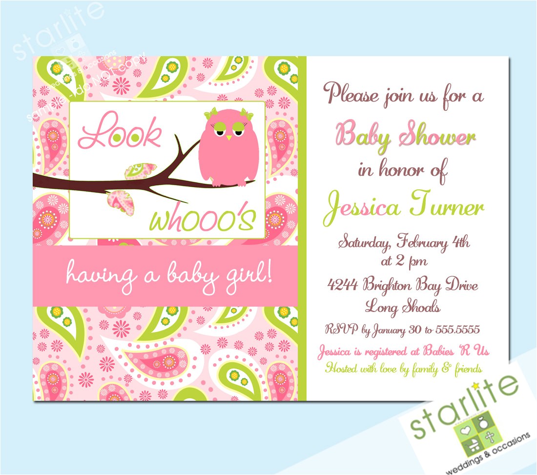 OWL Baby Shower Invitation with Pink and Green Digital from owl baby shower invitations etsy