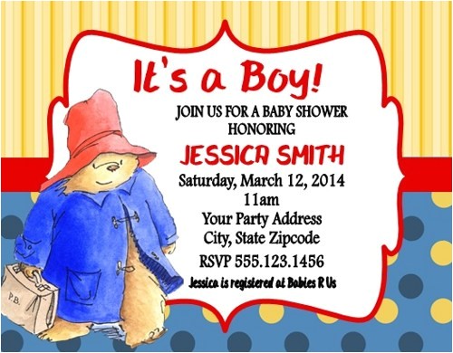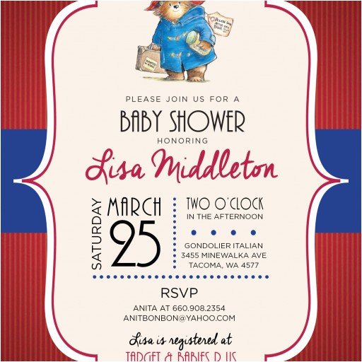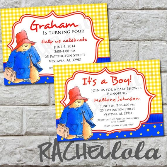 Paddington Bear Baby Shower Birthday Party Invitations from paddington bear baby shower invitations