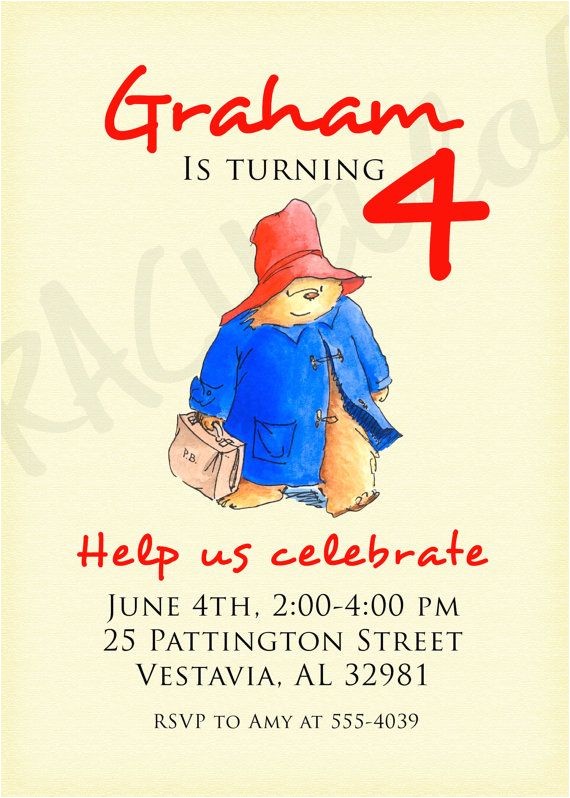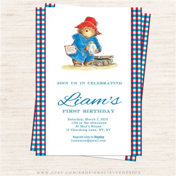 Paddington Bear birthday invitation or baby shower by from paddington bear baby shower invitations