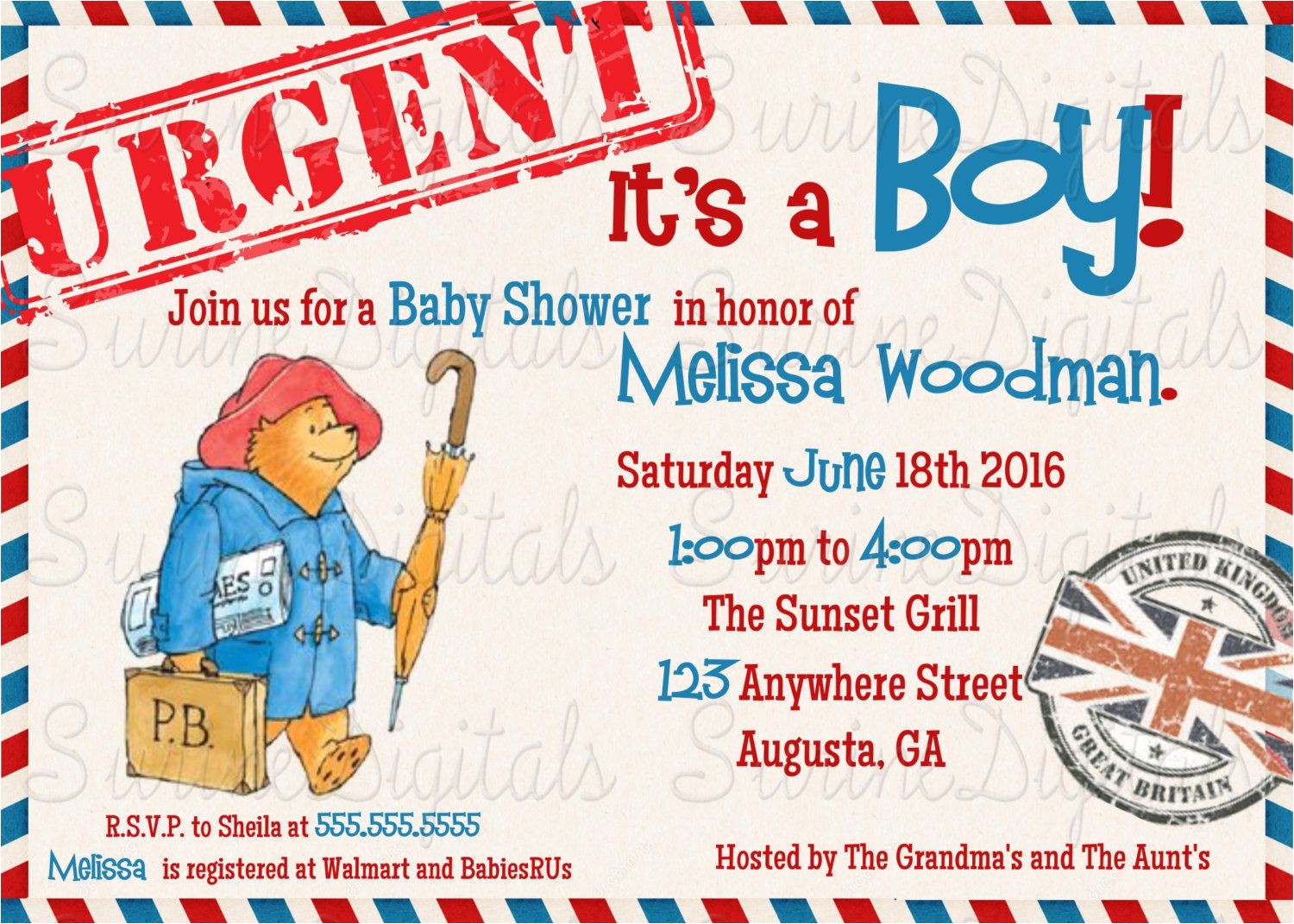 Paddington Bear Party Invites from paddington bear baby shower invitations