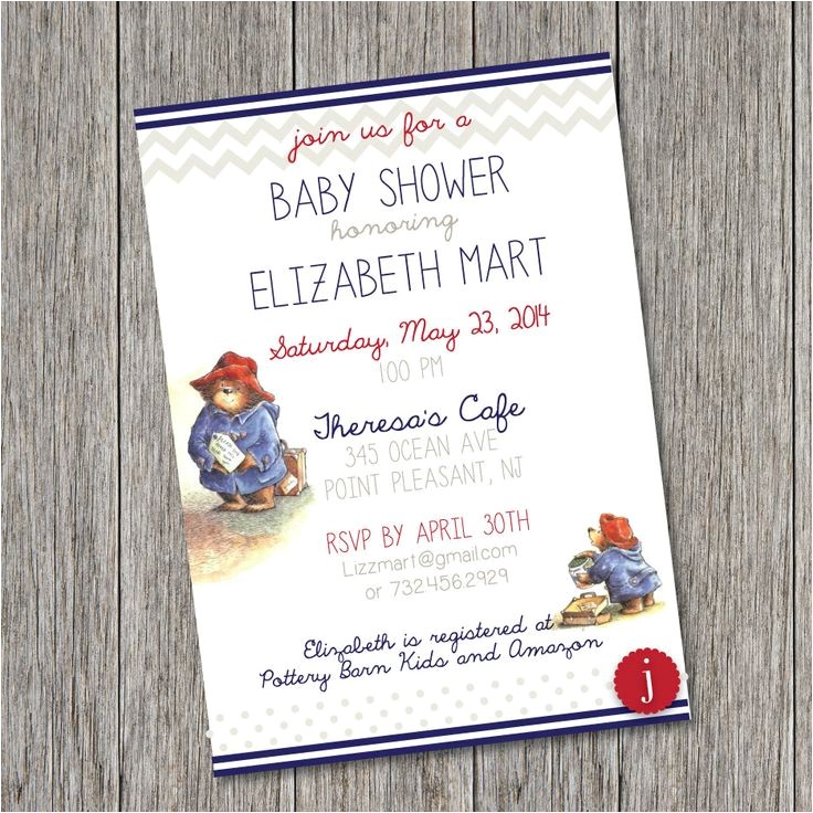 Paddington Bear Custom Baby Shower Invitation from paddington bear baby shower invitations
