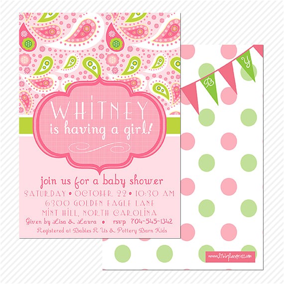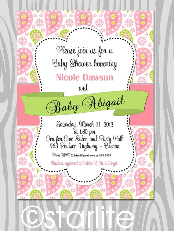 Baby Shower Invitation Pink Green Paisley Baby Girl by from paisley print baby shower invitations