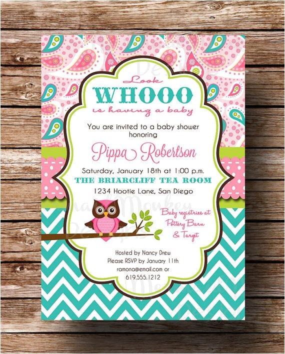 Owl Baby Shower Invitation Baby Girl Pink Aqua Teal from paisley print baby shower invitations