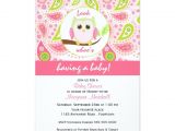 Pink Owl and Paisley Print Baby Shower Invitation from paisley print baby shower invitations
