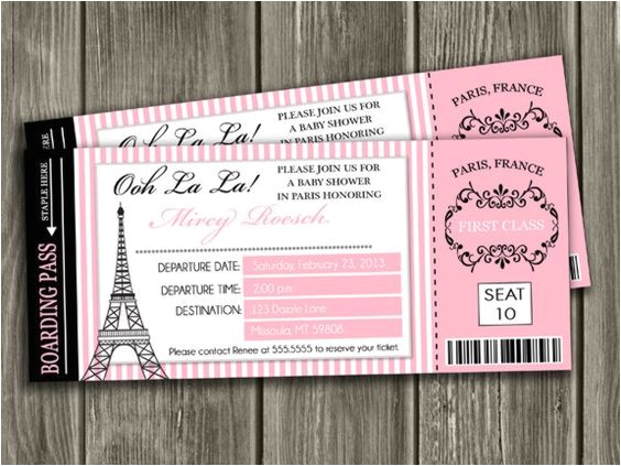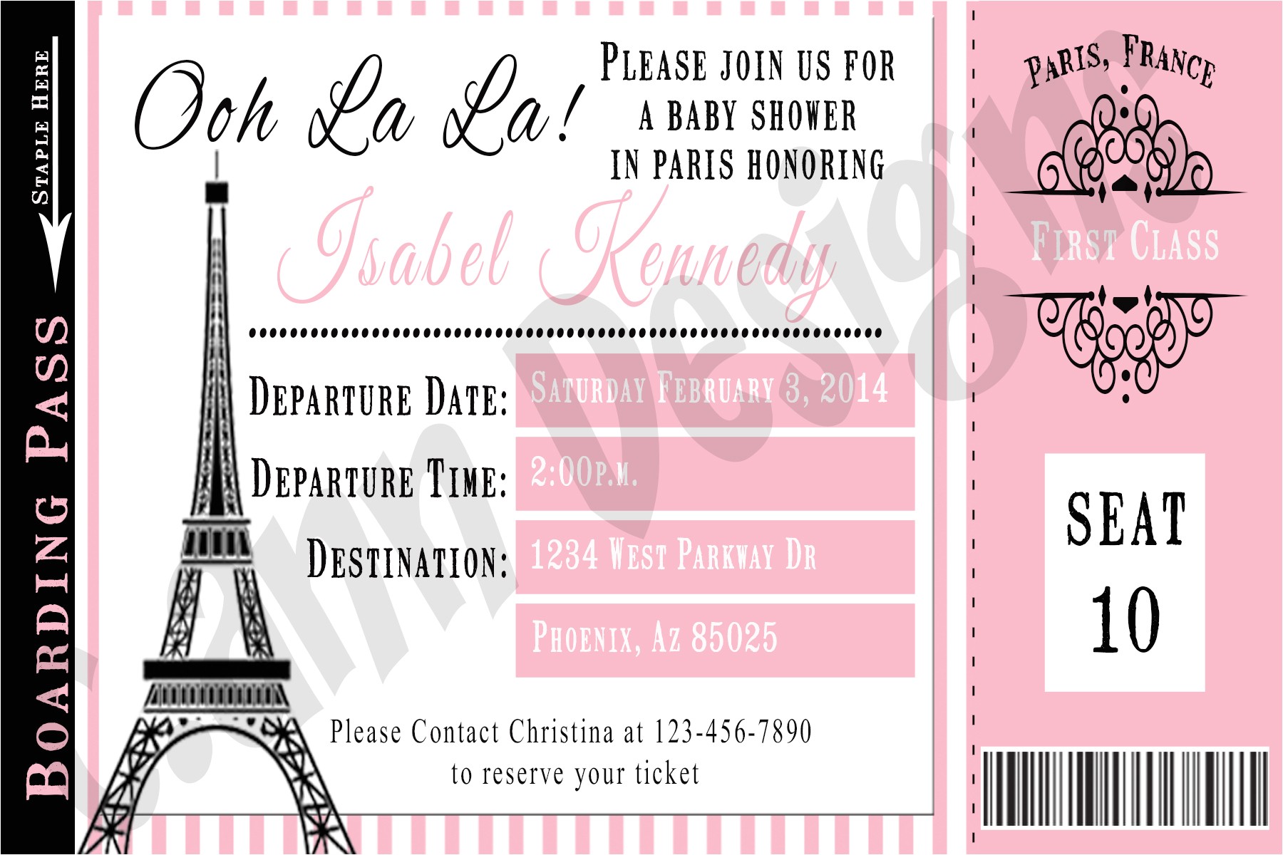 Paris Boarding Pass Baby Shower Invitation Ticket from paris passport baby shower invitations