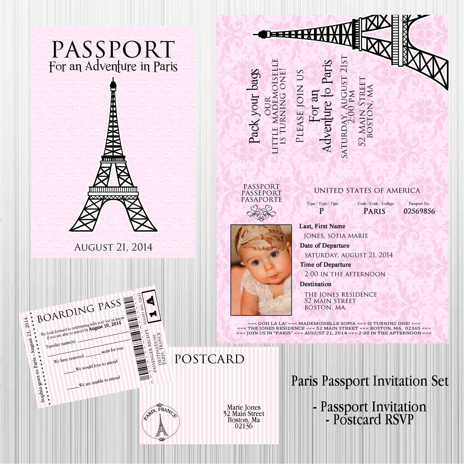 Pin Paris Themed Passport Invitations For Birthday Party from paris passport baby shower invitations
