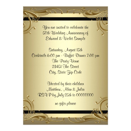 elegant gold 50th wedding anniversary party card zazzle com from party city 50th anniversary invitations