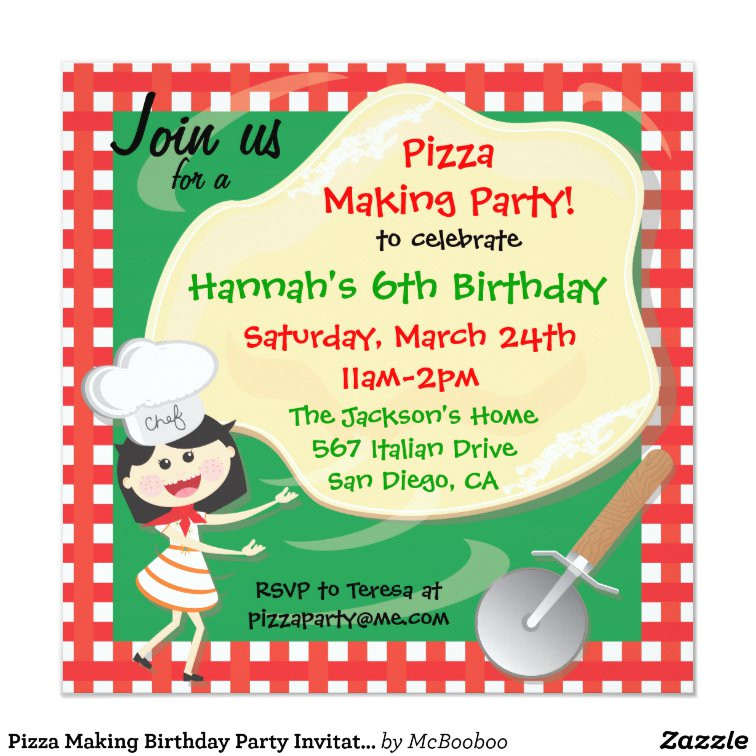 pizza making birthday party invitation card zazzle from Party Invitation Cards Making