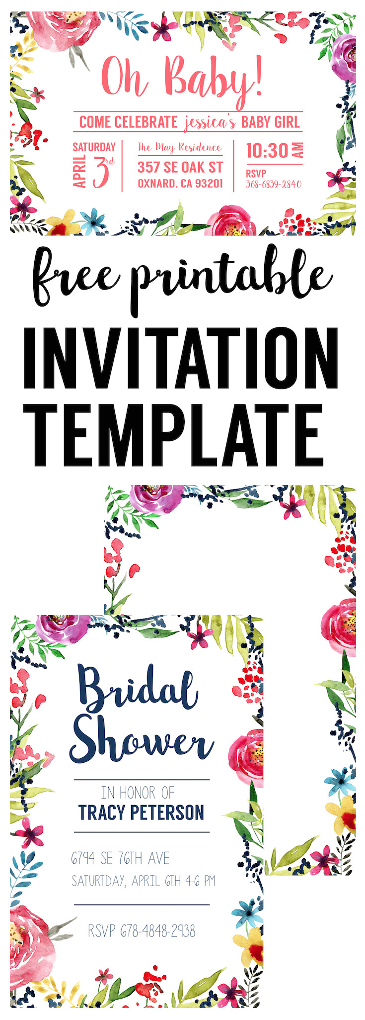 floral borders invitations free printable invitation from Party Invitation Template Free