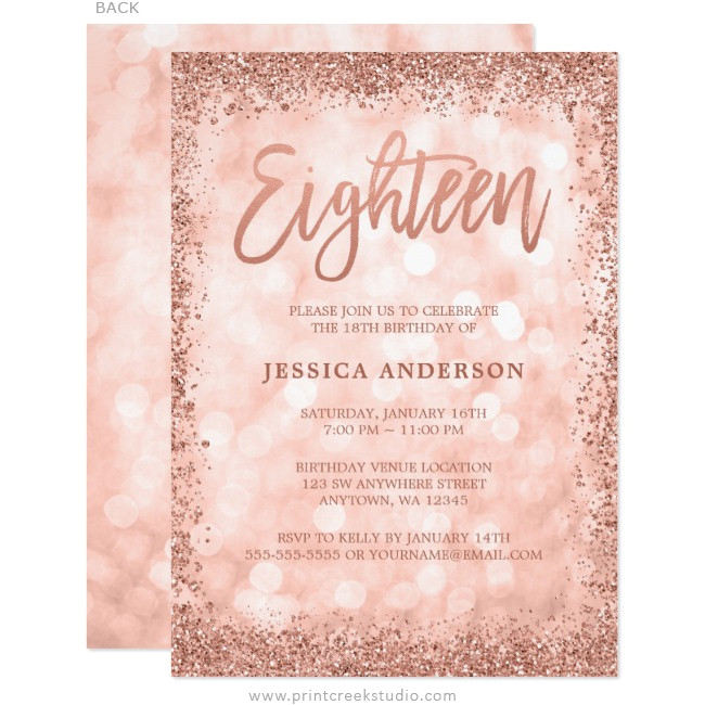 rose gold 18th birthday invitations print creek studio inc from Party Invitation Template Rose Gold