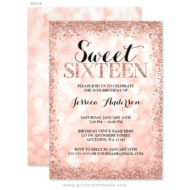rose gold faux glitter lights sweet 16 invitations print from Party Invitation Template Rose Gold