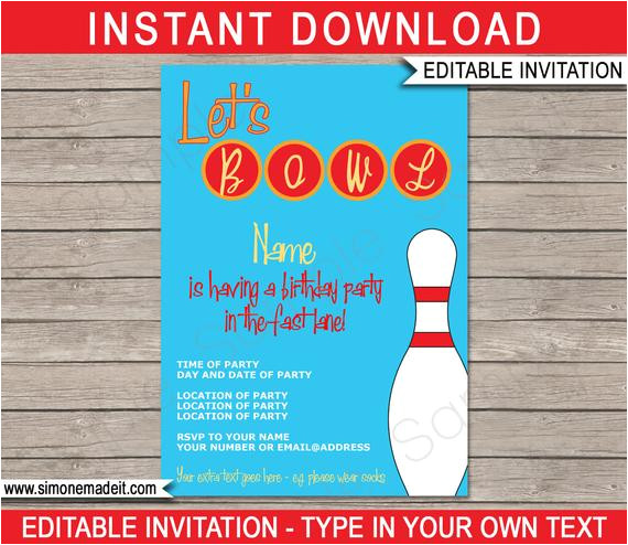 bowling invitation template birthday party instant from Party Invitation Template Text