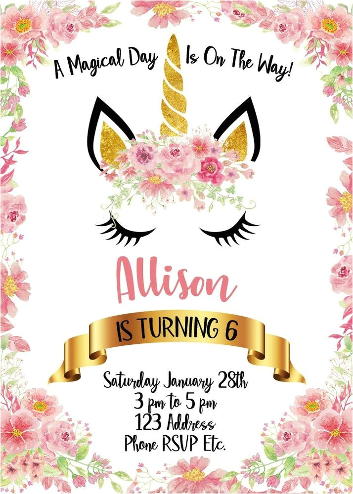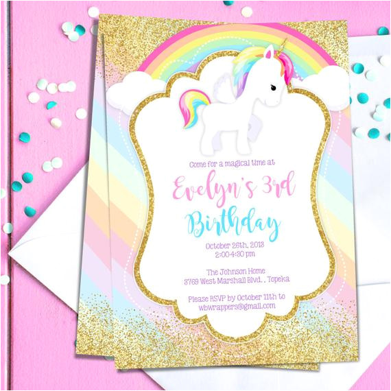 unicorn invitation unicorn birthday invitation unicorn party from Party Invitation Template Unicorn