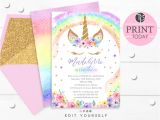rainbow unicorn invitation editable template edit at home from Party Invitation Template Unicorn