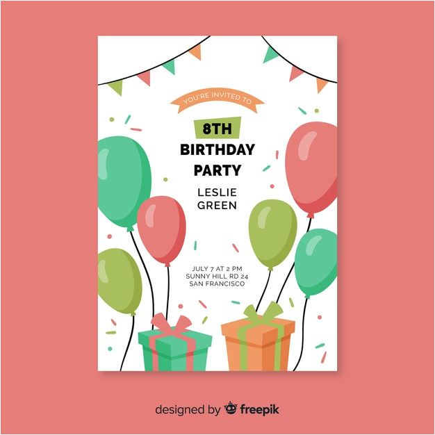 flat design birthday invitation template vector free from Party Invitation Template Vector Free