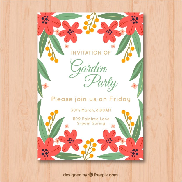 garden party invitation template with beautiful flowers from Party Invitation Templates Free Vector Download