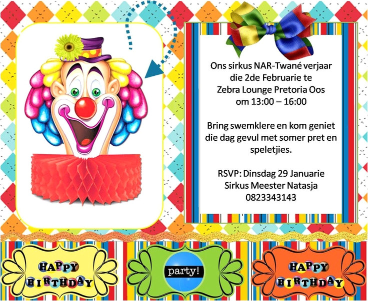 afrikaanse bewoording vir sirkus partytjie invite idea from Party Invitation Templates In Afrikaans