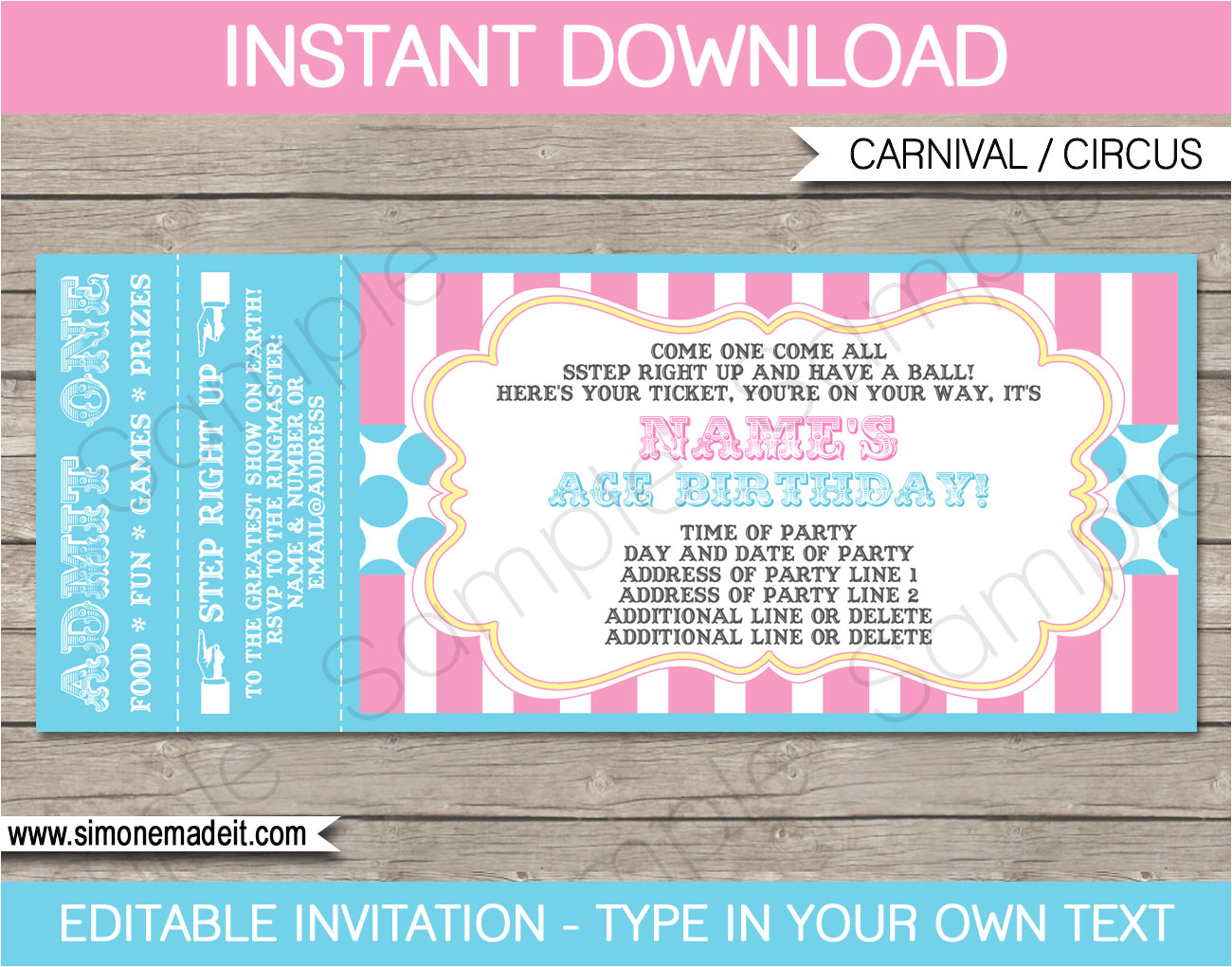 carnival birthday ticket invitations template