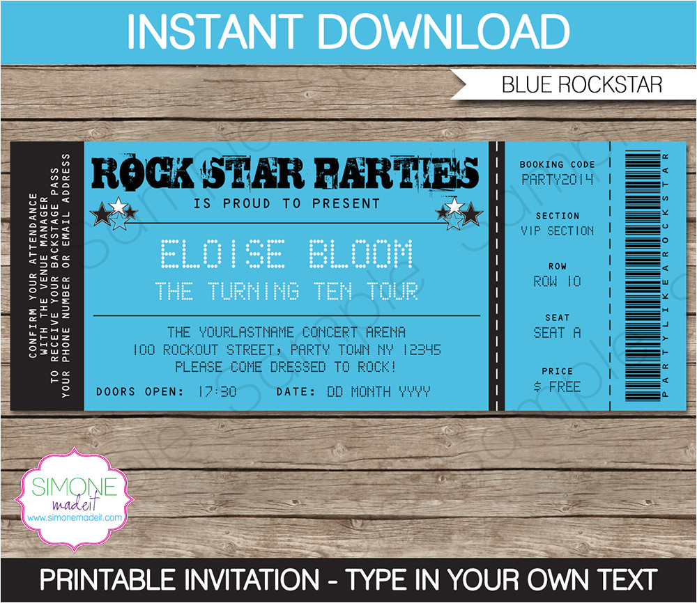 rockstar party ticket invitation template blue birthday from Party Invitation Ticket Template