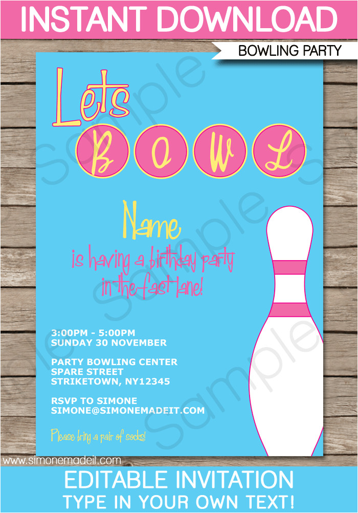 bowling party invitation template pink birthday party from Party Invite Template Bowling