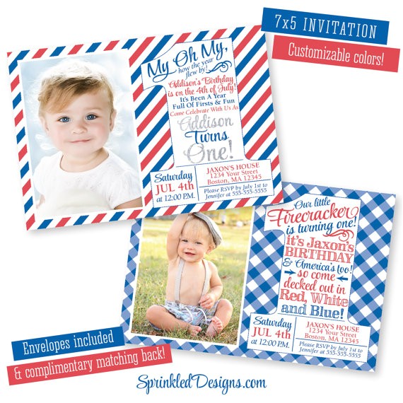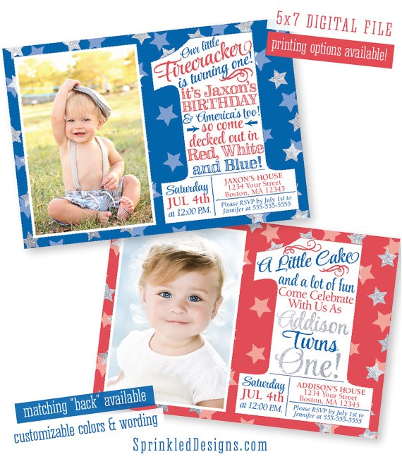 4th of July Invitation first birthday party red white and from patriotic first birthday invitations