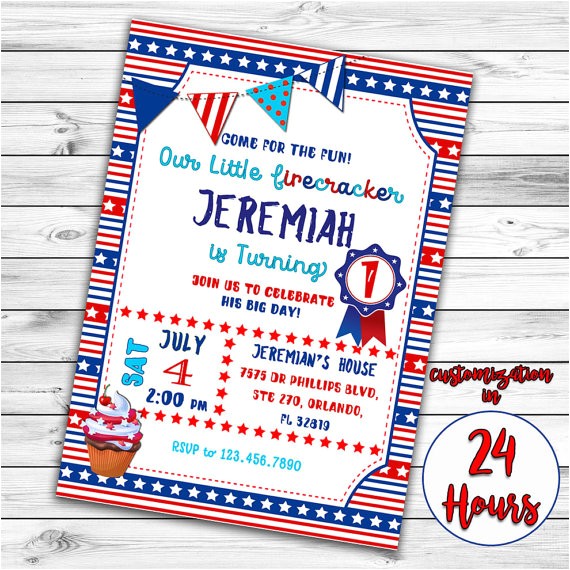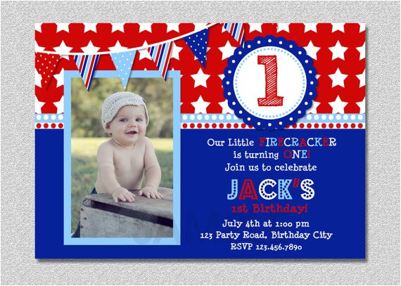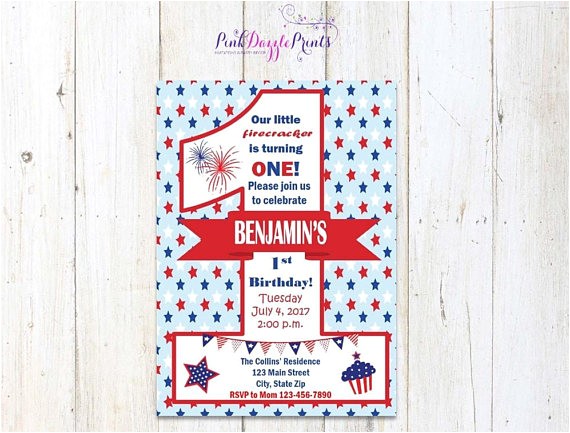 Red White and Blue Firecracker Birthday Invitation Boys or from patriotic first birthday invitations