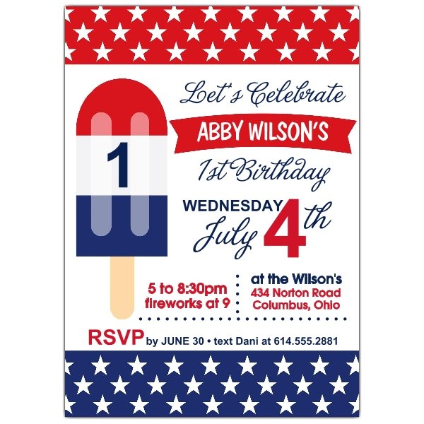 Patriotic Popsicle 1st Birthday Party Invitations from patriotic first birthday invitations