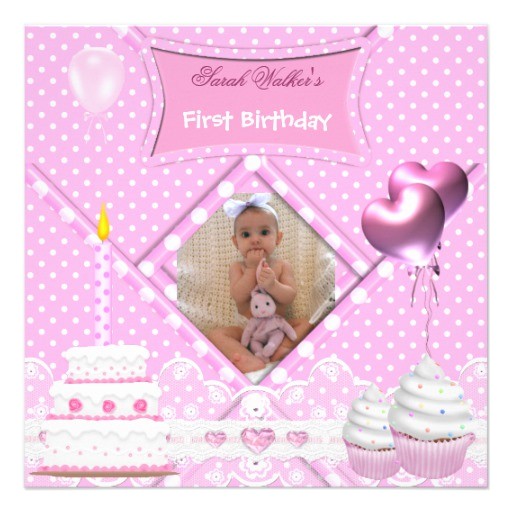 First Birthday 1st Girl Spot Pink Cupcake Cake 13 Cm X 13 from personalised 1st birthday invitations uk