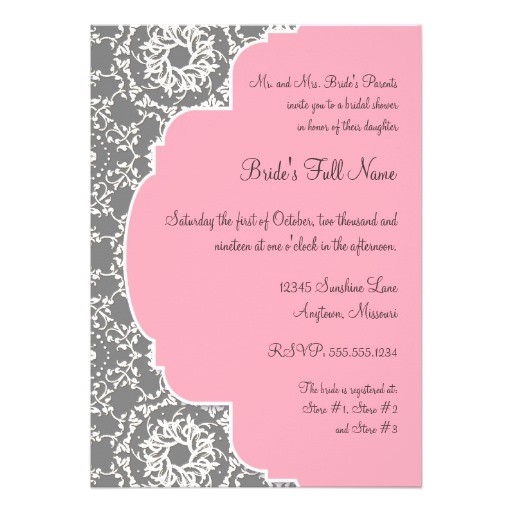 pink and gray bridal shower invitations sample: