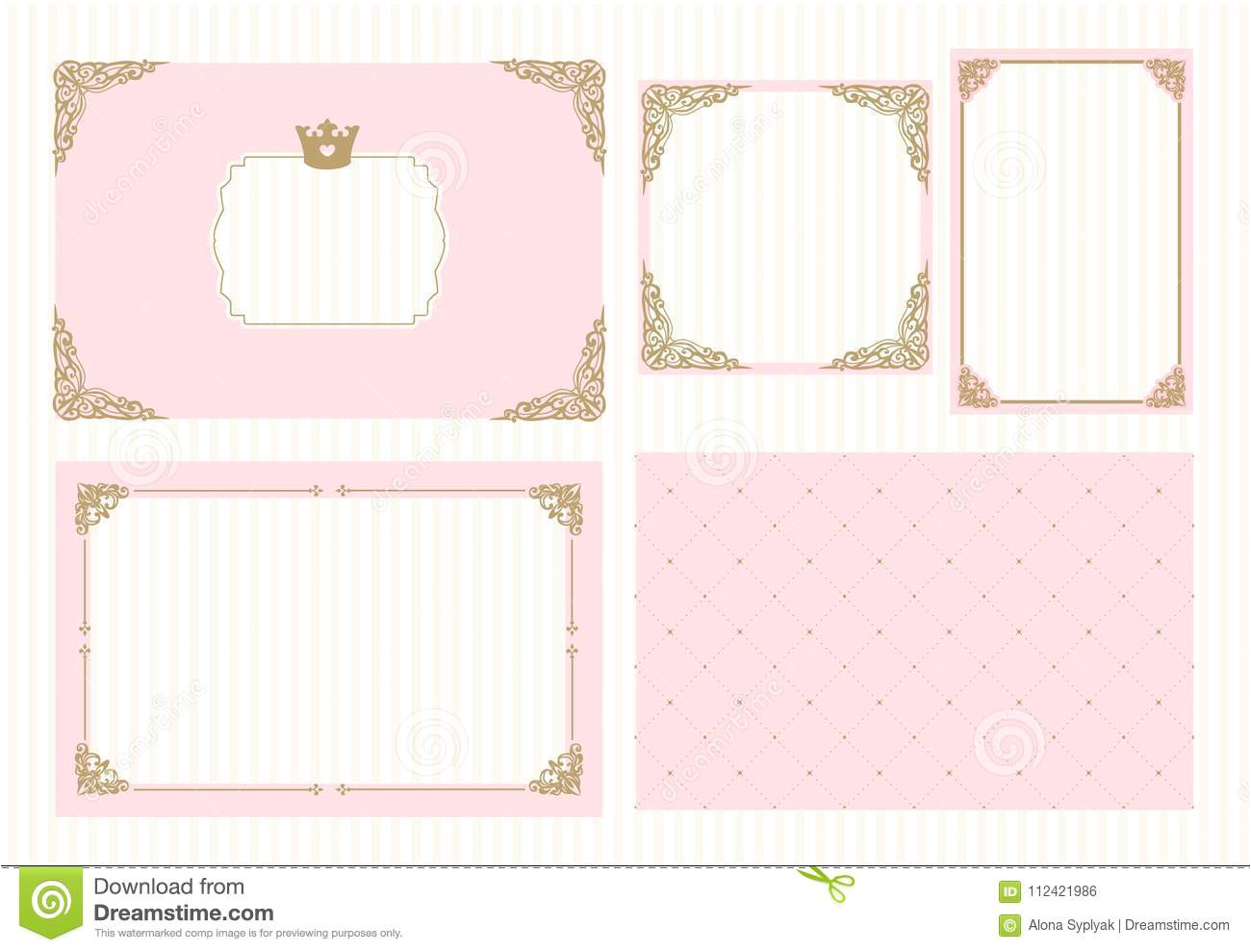 a set of cute pink templates for invitations vintage gold from Pink Birthday Invitation Template Vector