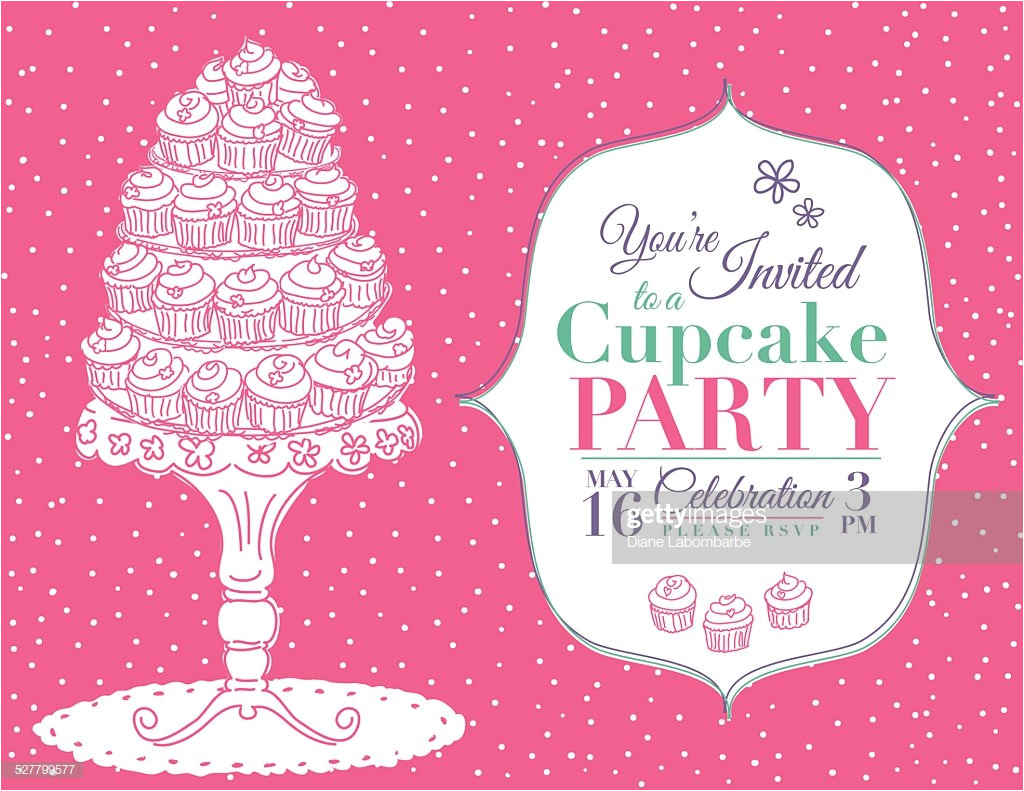 cartoon cupcake party invitation template pink vector art from Pink Birthday Invitation Template Vector