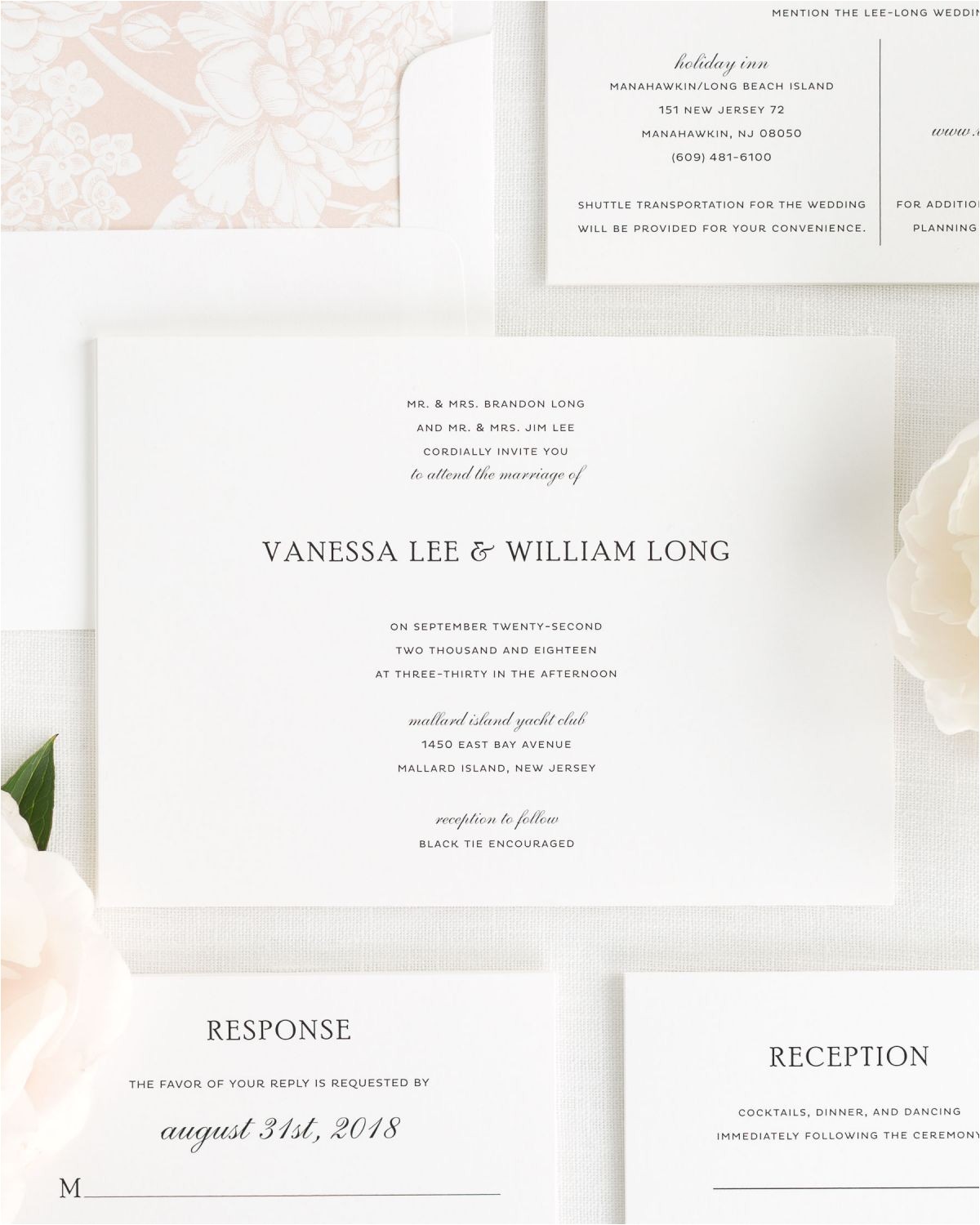 There are next many options for mixture and approve wedding invitations. These are often sets of invitations that have many stand-in options handy for each of the pieces of your invitation set, from invitation paper to envelopes, fonts and scripts and more. By hand selecting these choices, you can make an individualized see to your invitations that speaks of the two of you as a couple without having identical invites that someone else has.