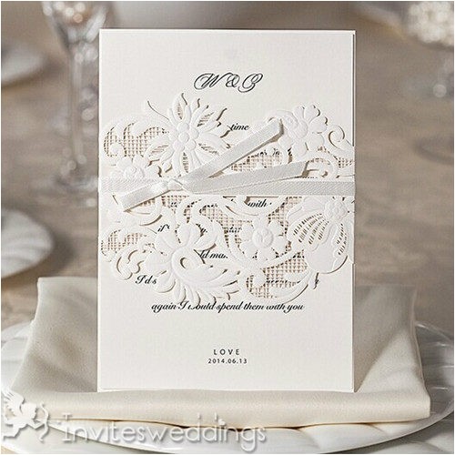 simple white laser cut ribbon wedding invitations iwsm009 from plain white wedding invitations