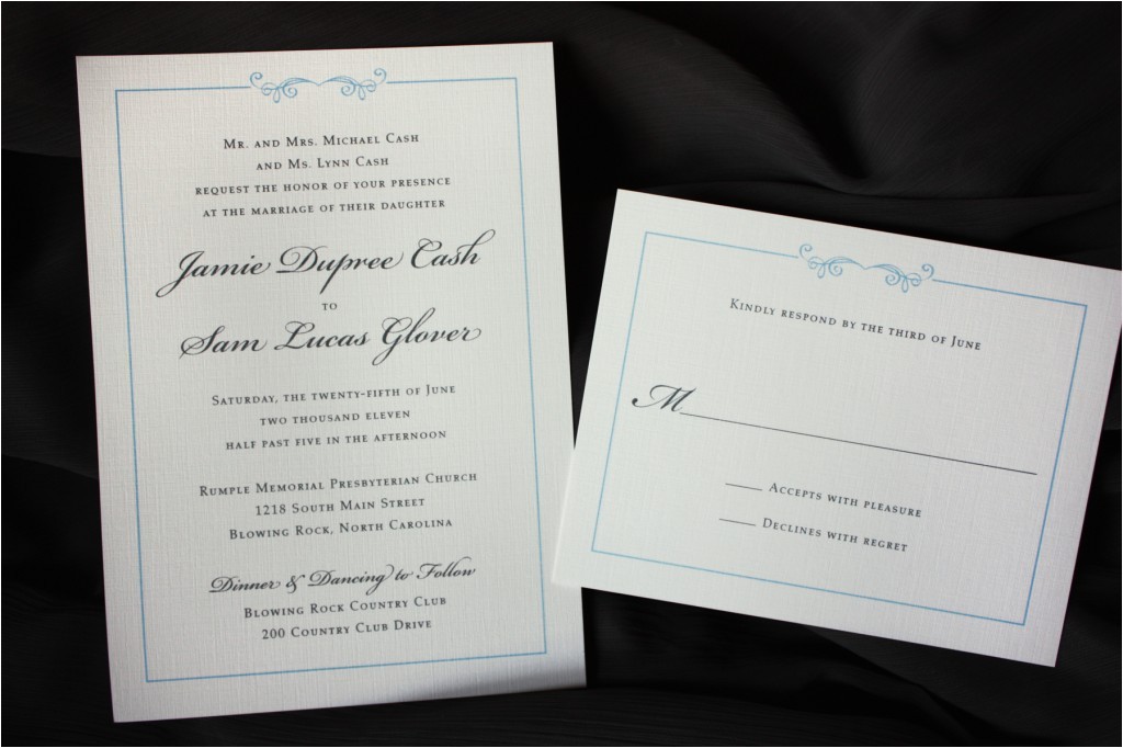 simply elegant light blue and gray scroll border wedding from plain white wedding invitations