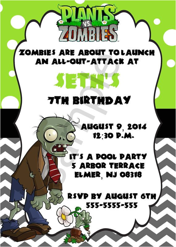 unavailable listing on etsy from Plants Vs Zombies Birthday Invitation Template
