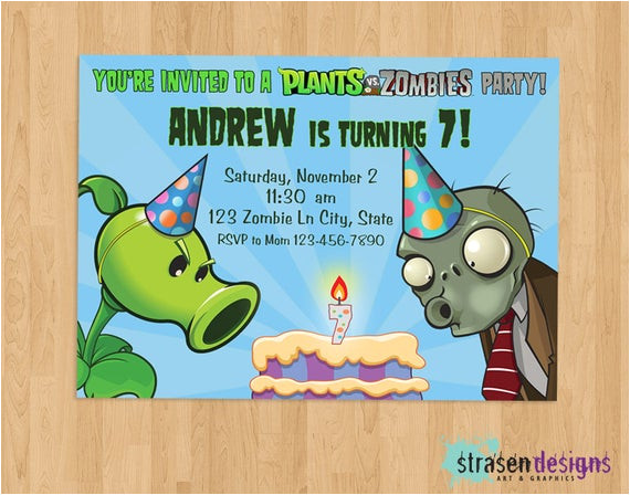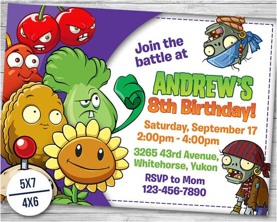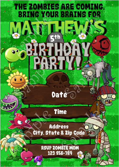 plants vs zombies party invitation digital download from Plants Vs Zombies Birthday Invitation Template