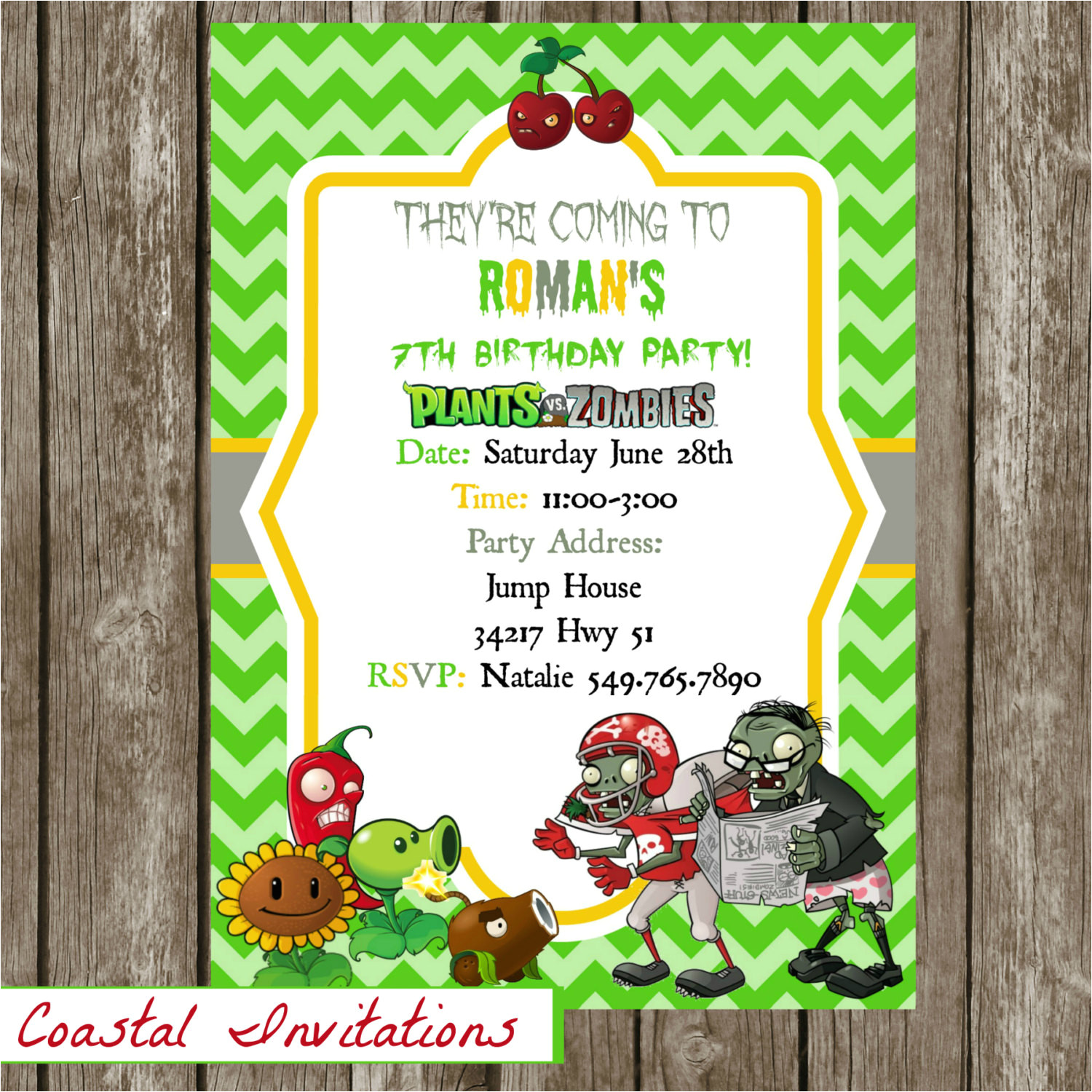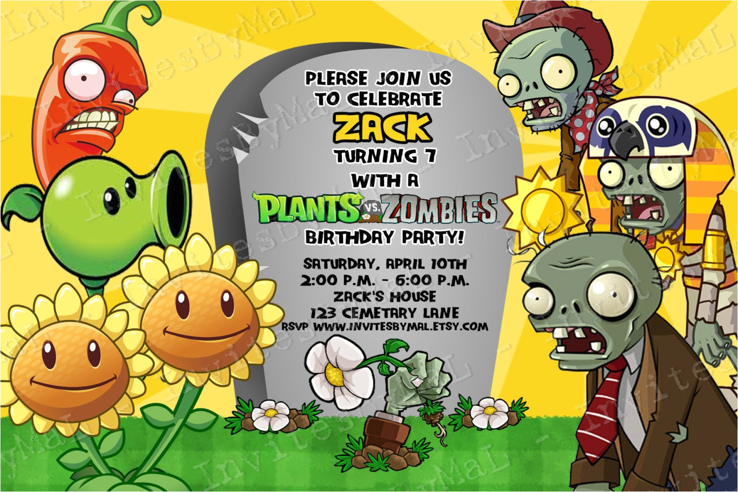 plants vs zombies invitation by invitesbymal on etsy from Plants Vs Zombies Birthday Invitation Template