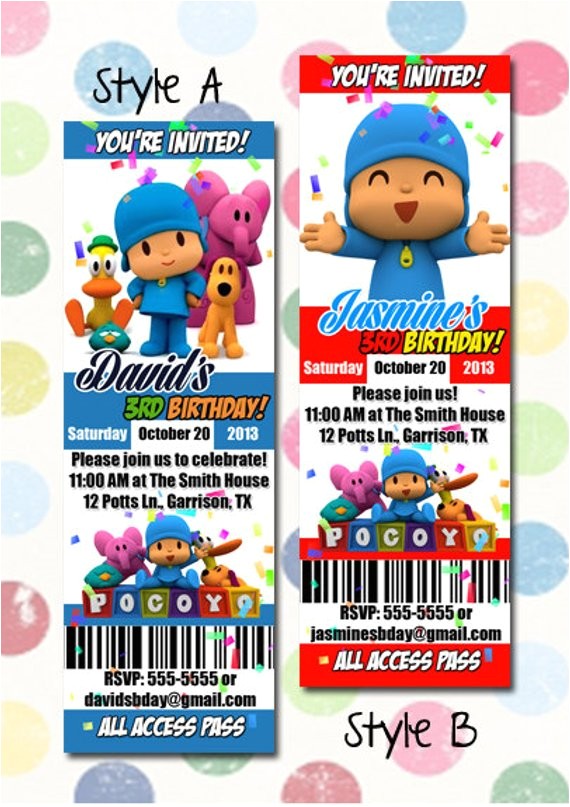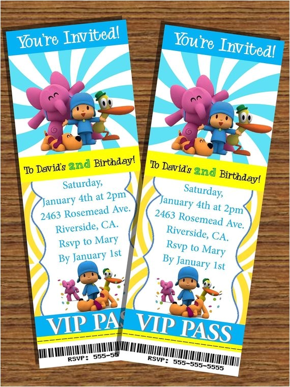 items similar to pocoyo birthday party invitation ticket from pocoyo birthday party invitations