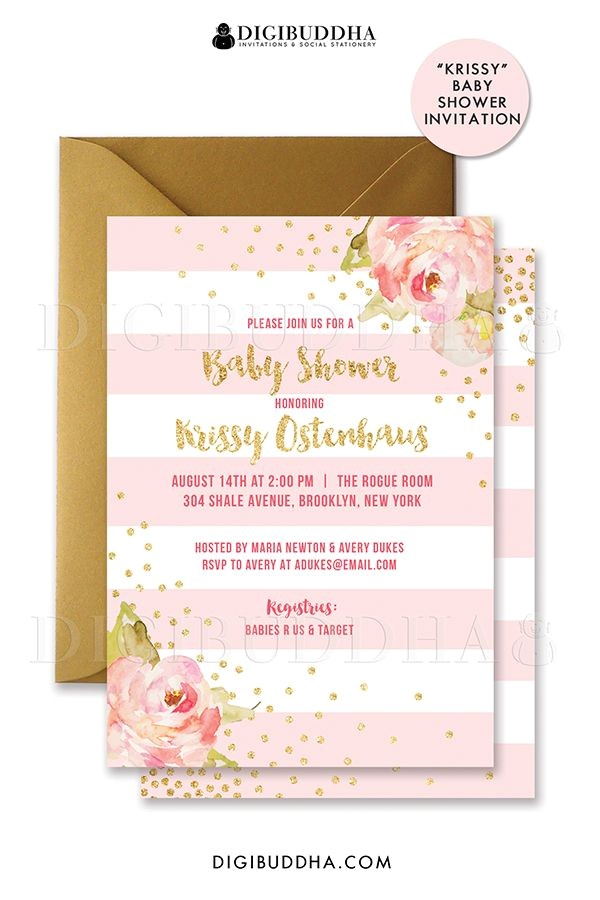 blush pink gold striped baby shower invitations with from pre made baby shower invitations