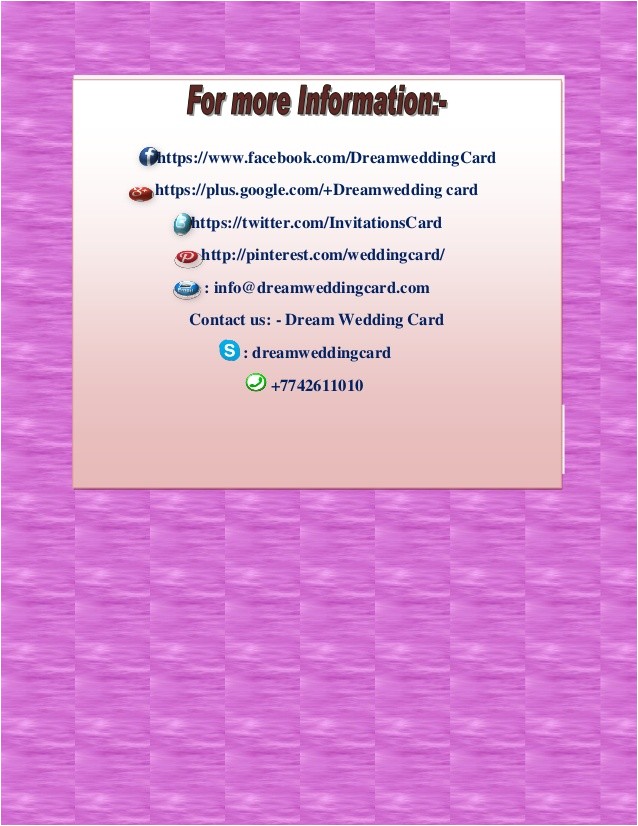 Being unique in every your wedding choices is what many couples are looking for. Most do not desire to have a wedding that is concerning the similar as the wedding you and your contacts attended last summer. prefer want a fresh, extra look that will be unique to you and be swap from everyone else. This is your special morning and it should be every more or less you two as a couple, and you can start this tradition later unique and individualized wedding invitations. Check out the variety of invitations that are to hand and start choosing your own personal style.