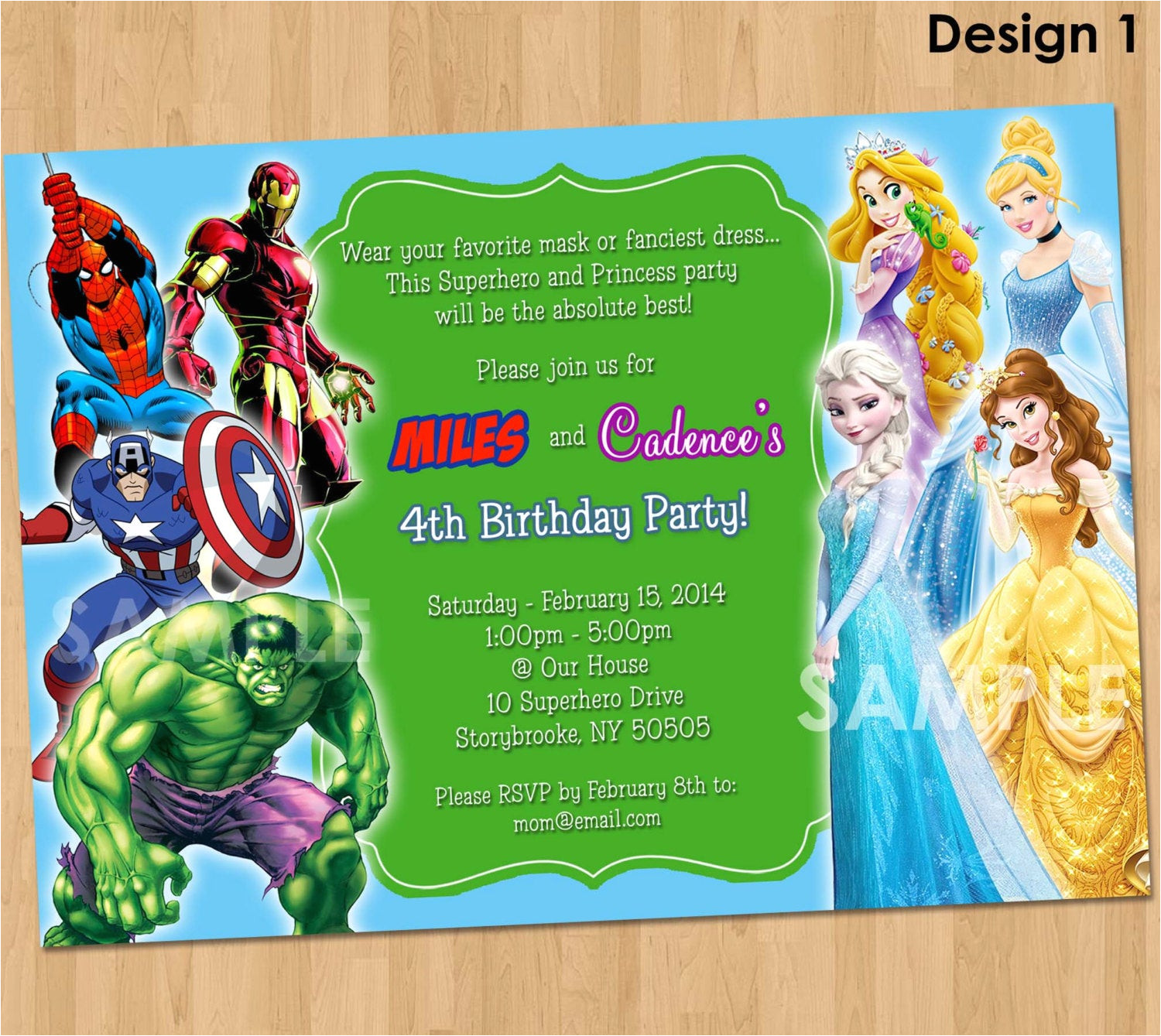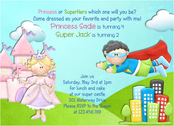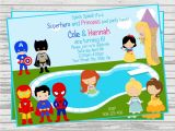 double party invitation superheroes and princesses from Princess And Superhero Party Invitation Template